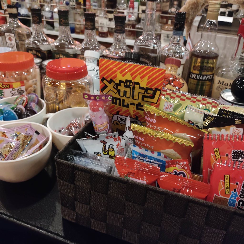 導入曲数No.1のJOYSOUNDを導入させていただきました。お酒と共に歌ってほしい、駄菓子と共に歌ってほしいそういった思いのカラオケバーブラックキャットです。